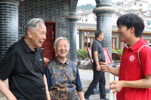 寻访“当代愚公”,感悟时代精神。在遵义市播州区平正乡团结村,实践队员拜访了“七一勋章”获得者、感动中国2017年度人物、时代楷模、有着“当代愚公”之称的原草王坝村党支部书记黄大发,聆听了老支书讲授的一堂专题思政课,了解老支书带头修渠的感人事迹,深刻感受到一位共产党员的初心与使命。走在大发渠旁,实践队员切身体会了险峻的地理环境以及“天渠”修建的艰辛,内心受到极大震撼。在大发渠党性教育陈列馆,实践队员再次被黄大发老支书政治坚定、一心为民、埋头苦干、百折不挠的精神品质深深感染。