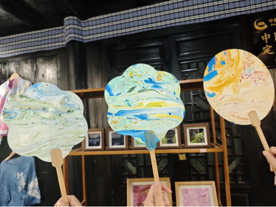 随后,在皮纸制作技艺州级非遗传承人杨帆老师的带领下,实践队体验了非遗漆扇的制作过程,了解了贞丰的蜡染、扎染、陶艺、刺绣等传统非遗手艺。在这过程中,队员们清晰意识到:贞丰人民打造出一条完整的非遗文化旅游产业链的同时,新时代守艺人用开放创新、有教无类的思想,让非遗文化在创新中得到发扬和传承,在创造中蓬勃发展,这为贞丰旅游业的发展擘画出浓墨重彩的新篇章,向旅客呈上一张独具特色的贞丰名片。