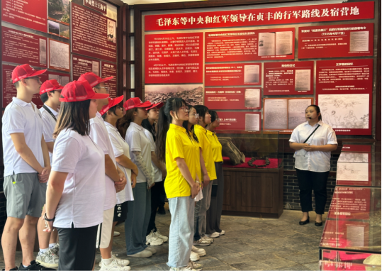 接着,实践队来到了贞丰古镇文昌宫红军纪念馆。在工作人员的讲解下,了解了贞丰会战、红军坡扪战斗、白腊战斗等的具体过程,参观了红军使用过的战斗号角、旗帜和军装。红军奋勇杀敌的胆量、红军不畏敌人的气概与勇猛深深震撼着每一名队员。