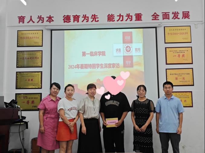 为加强家校联系,精准帮扶员工,把党和国家的关怀、公司的关爱、老师的温暖送到特困员工家中,激励员工勤奋学习,努力进取,2024年8月26日至27日,第一临床公司党委副书记杨洪艳带队员工科、就业办、2021级各支部书记一行6人,前往毕节市七星关区小坝镇壕沟村白鸡塘组、赫章县六曲河镇家竹村兴安组、威宁县龙街镇银桥村桥上组、铜仁市石阡县本庄镇瓮堡村瓮堡组4名特困员工家中开展了走访慰问活动。