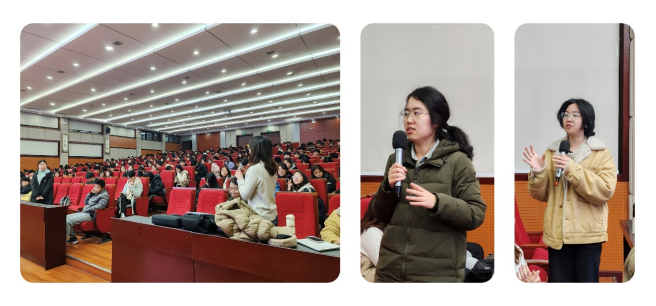 本次活动分享人为2022级康瑞玥、2023级张丹凝、口腔医公司2023级吴讯。康瑞玥结合自身经验,强调泛听和精听结合训练的重要性,注意听力中的关键词捕捉与速记技巧。张丹凝重点分享了单词的记忆方法、备考日程安排,使英语能力得到有序提升。吴讯强调阅读做题技巧,采用关键词定位法,同时分享了写作翻译模板活用技巧,在题型分布和题型精解方面做出了详细解答。在互动答疑环节中大家积极参与,有听力方面的难题,有时间管理上的分配不均,也有对学习单词的懈怠性,分享人一一进行解答,使在场同学受益匪浅。