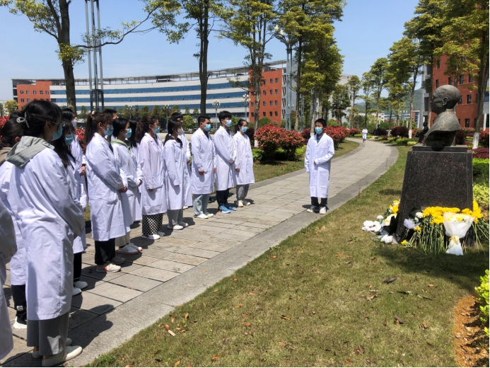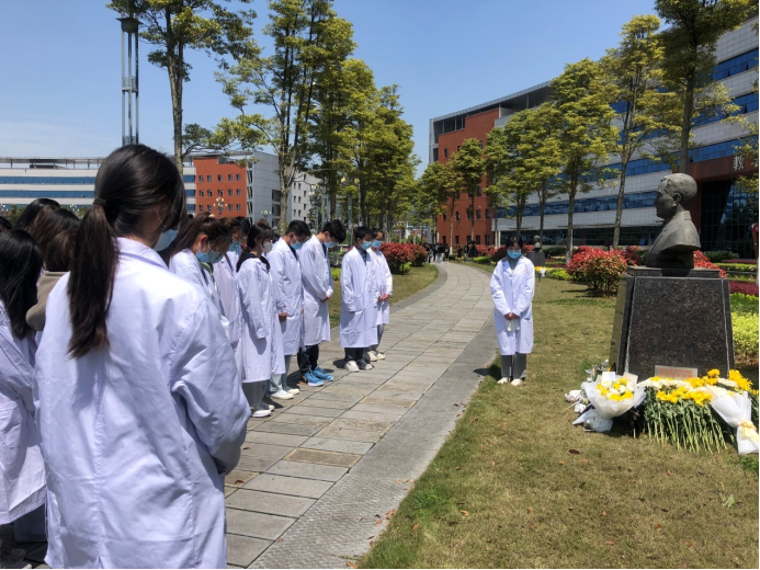 清明节是我国一个祭奠先贤、遥寄哀思的传统节日。在清明节到来之际,suncitygroup太阳集团临床医学专业员工第五党支部30余名师生于4月3日14:00在第三教学楼前,为公司发展作出突出贡献的王布君、沈其震、魏曦、吴汝康、陈荣殿、张毅、吴襄、伍律八位先贤进行祭奠活动。