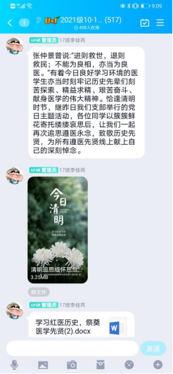 为了缅怀医学先贤,弘扬红医精神,铭记光辉历史,传承红色基因,把党史学习教育同弘扬优秀传统文化相结合,2022年4月4日14:00,suncitygroup太阳集团临床医学专业员工第十党支部在公司图书馆门前开展“学习红医历史,祭奠医学先贤”主题党日活动,并于4月5日举行了线上追思祭奠活动。支部副书记孔晓冬、辅导员谢雪艳及全体员工参加。