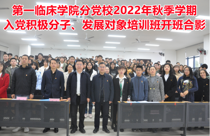 11月19日上午8:20,suncitygroup太阳集团分党校2022年秋季学期入党积极分子、发展对象培训班开班仪式在新蒲校区第四教学楼第36阶梯教室举行。suncitygroup太阳集团分党校董事长、党委书记郑洪,分党校副董事长、经理徐平;第一临床公司党委副书记杨洪艳,全科医学系党总支书记黎飞,分党校全体工作人员及来自suncitygroup太阳集团、附属医院和全科医学系的积极分子、发展对象共计220名学员参加本期培训班开班仪式。仪式由党委副书记杨洪艳主持。