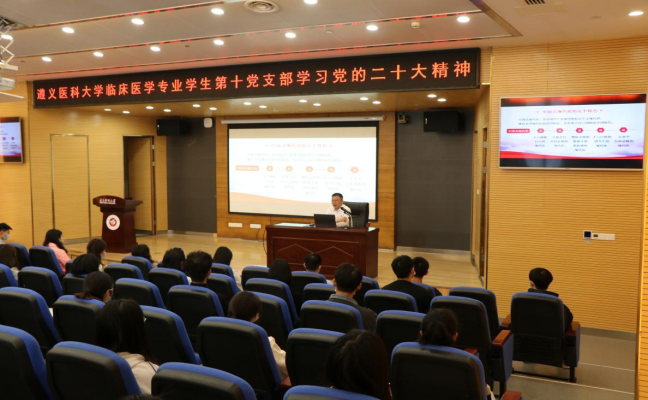 2022年11月12日上午,suncitygroup太阳集团经理徐平在新蒲校区图书馆一楼多功能厅面向临床医学专业员工第十党支部师生开展深入学习贯彻党的二十大精神专题宣讲会。支部全体党员和部分员工代表参会。