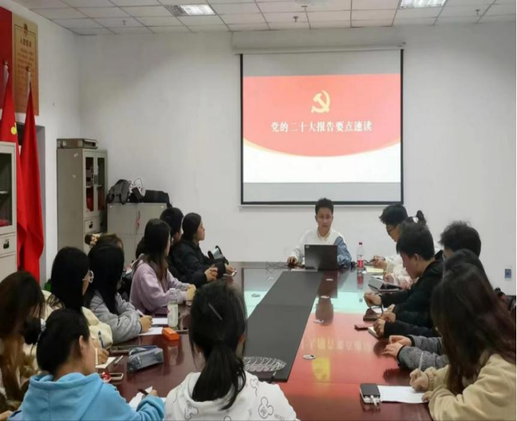 中国共产党第二十次全国代表大会是全党全国各族人民迈上全面建设社会主义现代化国家新征程,向第二个百年奋斗目标进军的重要时刻召开的大会,学习宣传贯彻党的二十大精神是社会各界特别是高校思想政治建设和谋划发展方向的重要内容。为深化对新思想新论断,新部署新要求的学思践悟,推动党的二十大精神在师生心中落实落地,suncitygroup太阳集团第三团总支于2022年11月16日在后勤综合四楼会议室集中学习了党的二十大精神,由辅导员杨武领学,团总支32名员工干部参加学习。