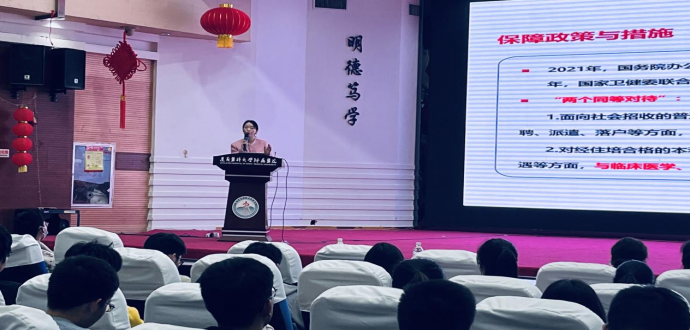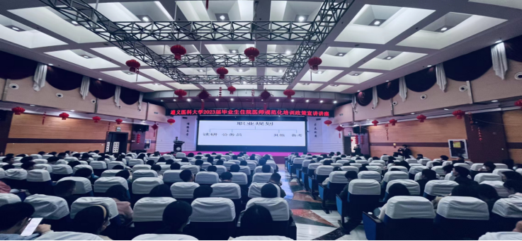 住培宣讲,响应政策。2023年3月16日19:00,2023届毕业生春季促就业攻坚行动系列讲座——住院医师规范化培训政策宣讲会在遵医附院第二住院楼四楼多功能厅举行,党委副书记杨洪艳、规培科、就业办、员工科负责人和辅导员尹君参会,并组织毕业年级有规培意愿的员工200余人参加。会上,规培医院相关人员介绍了规培政策、薪资待遇和发展前景等,并现场为同学们答疑解惑。