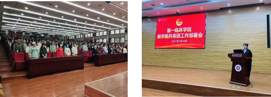 为加强对共青团干部的教育指导,进一步提高公司共青团干部的工作能力和效率,切实做到工作标准化、规范化,促进团学工作有序开展,2023年3月30日17:40,suncitygroup太阳集团在新蒲校区道德讲堂组织召开了新学期共青团工作部署培训会,会议由院团委书记孙会英、员工科科长姚华敏、临床医学专业员工第十一支部辅导员杨武和院员工会组织部部长刘若昕主讲,2020级、2021级、2022级各团支部团支书、宣传委员、组织委员,各团总支副书记和全体员工会成员参加。员工会权益部副部长盖鸿立主持会议。