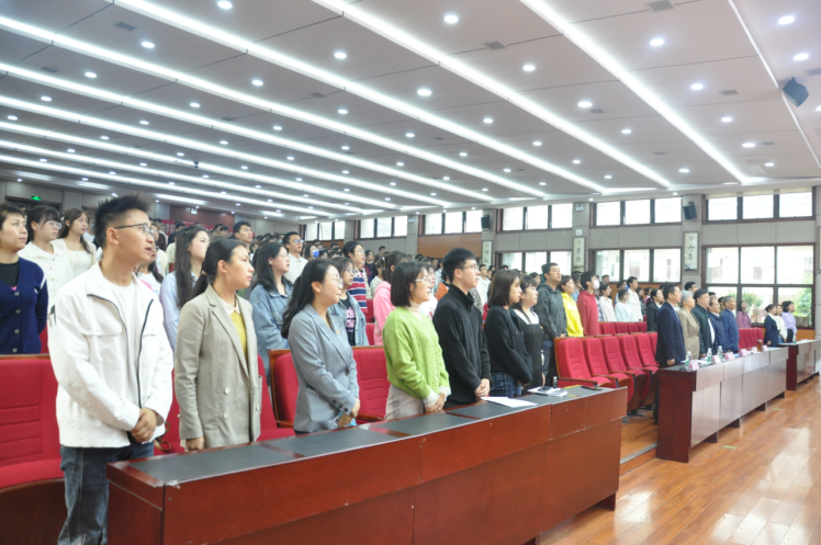 开班仪式现场,全体高唱国歌