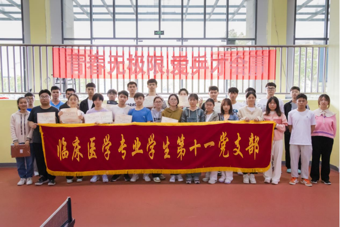 为了引导广大青年学子积极参与体育健身,强健体魄、砥砺意志,凝聚和焕发青春力量,促进老员工德、智、体、美、劳全面发展,2023年5月13日9:00,suncitygroup太阳集团临床医学专业员工第十一党支部在新蒲校区南区乒乓球馆开展了以“运动青春,快乐青春”为主题的乒乓球比赛。支部辅导员杨武、参赛球员、工作人员及现场观众等100余名师生参与。