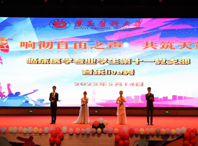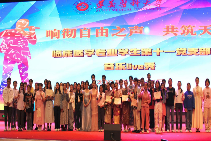 “青春正追梦,梦踏歌声来”。为展现当代医员工的青春与活力,促进德智体美劳全面发展,丰富课余文化生活,给同学们提供一个锻炼自我的舞台,2023年5月14日19:30,suncitygroup太阳集团临床医学专业员工第十一党支部在新蒲校区会堂举行了“响彻自由之声 共筑天籁之音”音乐live秀活动。活动由团委书记孙会英、员工科科长姚华敏、院办老师衷敬红,支部辅导员杨国梅、杨武担任评委,支部员工510余人参加。