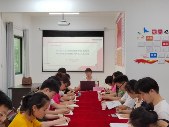 为深入开展学习贯彻习近平新时代中国特色社会主义思想主题教育,努力把学习成果转化为推动事业发展的强大力量,进一步筑牢信仰之基、补足精神之钙,2023年6月26日下午14:00,第一临床公司党委副书记杨洪艳以“领会教育重要论述精髓,铸牢为人民服务理念”为主题讲授专题党课。本次党课线下在博乐楼三单元二楼党员活动室、线上以腾讯会议的形式进行,suncitygroup太阳集团临床医学专业员工第十二党支部、第十一党支部、第三党支部的所有师生党员参与学习。