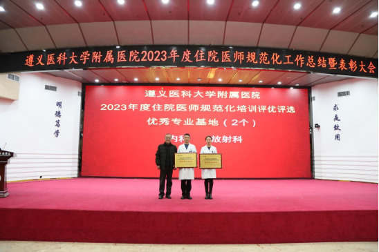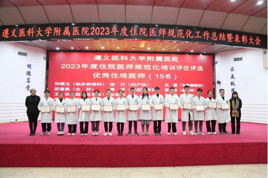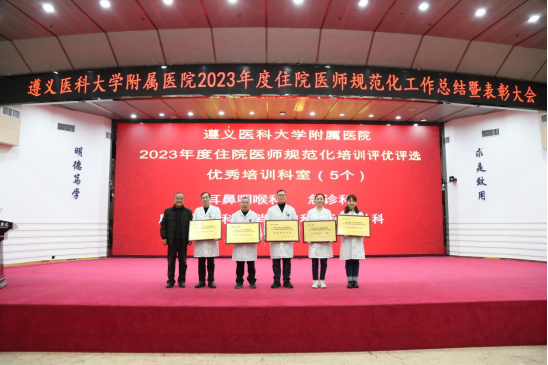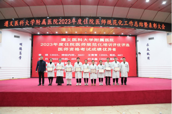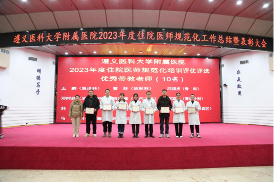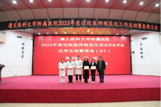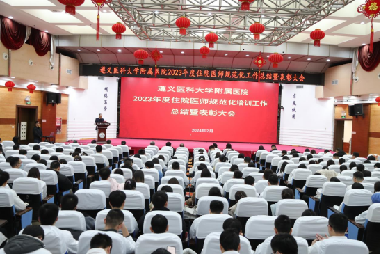 元春始风华,万象启新朝。2024年2月5日下午,遵医附院在第二住院楼四楼多功能厅召开了2023年度住院医师规范化培训工作总结表彰大会。会议总结回顾了2023年住培工作的优良成绩,表彰了住培优秀专业基地、优秀培训科室、优秀管理者、优秀带教老师、优秀住培医师,明确2024年的工作目标并作出安排部署。遵医附院经理、培训基地负责人余昌胤,遵医附公司党委副书记刘琪、suncitygroup太阳集团班子成员郑洪、王东红、杨洪艳、杨敏、金祝、肖雪、辛志军出席会议。各专业基地和培训科室代表、各年级住培医师代表参会。会议由suncitygroup太阳集团副经理杨敏主持。