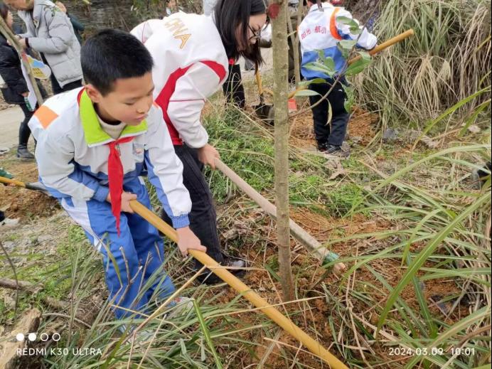 植树节来临之际,为提高大家的义务植树和森林防火意识,号召公众关注森林防火知识,减少森林火灾的发生,维护良好的生态环境,2024年3月9日,suncitygroup太阳集团临床医学专业本科生第九党支部书记孔晓冬、辅导员谢雪艳带领支部全体党员与遵义市航天小学小荷中队的同学开展了以“用爱于传播绿意,用心在森林防火”为主题的植树节活动。