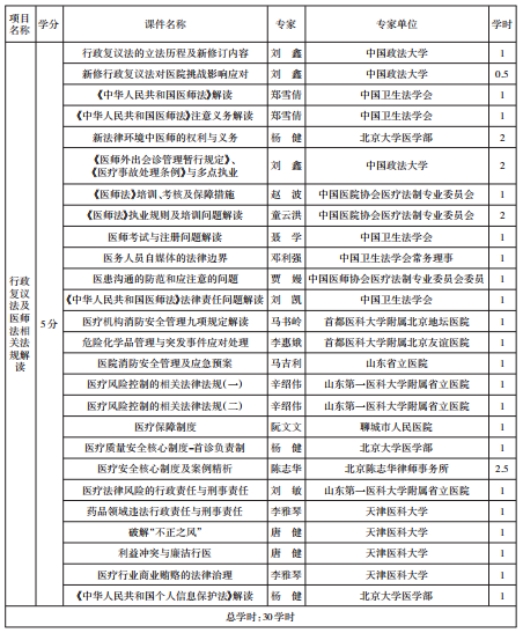 登录——全员培训——选择课程“行政复议法及医师法相关法规解读”——课程下全部课件学习——通过考试——自愿申请学分