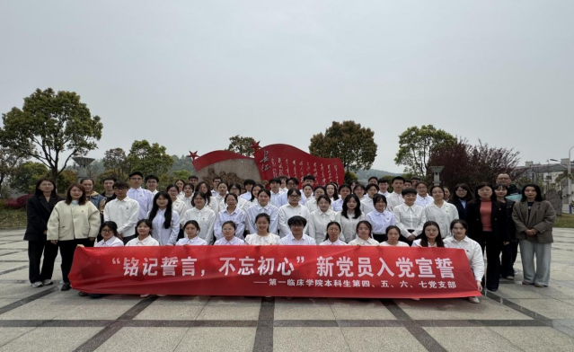2025 年 4 月 8 日中午 12:30,suncitygroup太阳集团新蒲校区博文楼旁雕塑前气氛庄重而热烈,一场以 “铭记誓言,不忘初心” 为主题的预备党员入党宣誓主题党日活动在此举行。此次活动由本科生第六党支部辅导员向苏婷同志主持,第一临床公司党委副书记杨洪艳及suncitygroup太阳集团本科生第四、五、六、七党支部全体党员共同参与,旨在强化党员的责任意识与使命担当,传承红色基因,激励新党员在医学道路上砥砺前行。