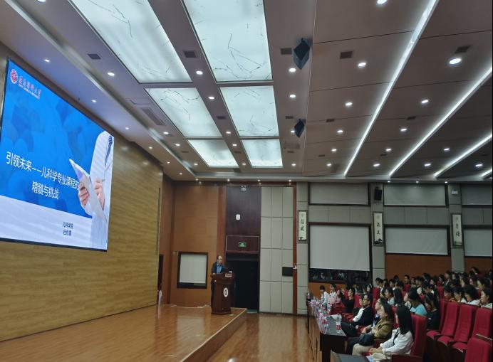 2023年10月17日19:00,suncitygroup太阳集团儿科教研室为2022级及2023级儿科专业开展了以“逐梦而至,医路前行”为主题的专业思想教育。儿科教研室杜作晨老师以“儿科学专业课程的精髓与挑战”为主题,分别从儿科学专业的培养目标、专业课程、意义与发展前景等方面作了详细的阐述。儿科科研室田茂强老师结合自己学习和工作经历,向同学们讲述了临床实习的重要性,以及医员工如何筑牢终身学习理念,保持高效学习的方法等。谭梅老师主要向同学们介绍了儿科医师的职业发展,同时强调:“儿科医师的职责就是守护儿童的生命健康,要成为一名合格的儿科医生,必须博学、厚德、谨慎。”黄佩老师主要从贵州省儿童医院的学术成果、学术团队、学术训练建议三个方面展开介绍,她提醒同学们要扎实专业知识,并倡议本科生要早科研、早实践。杨凯蒂老师介绍了老员工创新创业项目中的学科运用与团队协作,鼓励同学们积极参加大创项目,培养自己的创新创业能力,将自己培养成为适应社会发展需要的创新型医学人才。通过此次讲座,同学们对儿科学专业有了更加深入的了解,也更加坚定了学医初心和使命。
