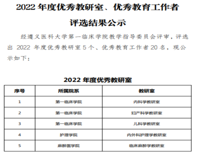 祝贺儿科教研室获得2022年suncitygroup太阳集团“优秀教研室”,田茂强获得“优秀教育工作者”!