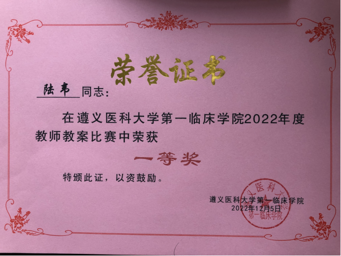 祝贺公司陆韦教授在2022年度教师教案比赛中获“一等奖”!